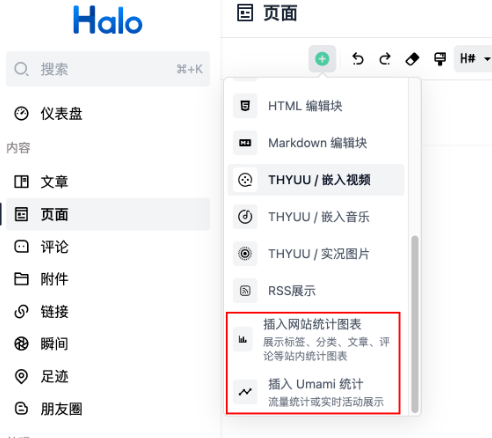 安装完成后,你可以创建一个新的页面,用于展示各种统计数据。插件提供了多个组件供你选择,比如: