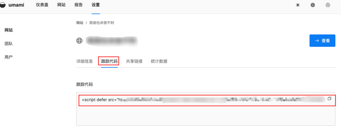 在成功登录到Umami后台后,第一步就是修改密码,确保账号安全。然后,按照系统的提示添加你需要统计的网站。配置过程相当简单,只需要将以下这段<script>代码插入到你网站的<head>部分,就能开始收集数据了: