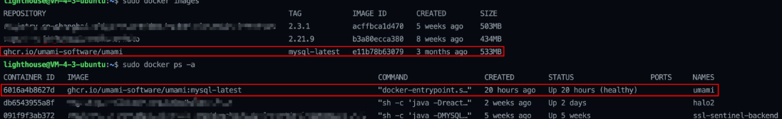 你会看到Umami的容器已经成功启动,并且umami数据库中已经创建了多个表。值得一提的是,在你访问Umami之前,请确认3000端口是否已经可以正常访问,否则无法进行后续的配置。