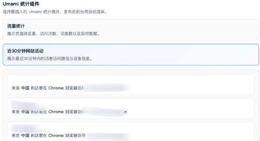 同时也加了【近30分钟网站活动】模块。配置完毕后,点击保存,即可在网站上看到直观的流量和活动数据。