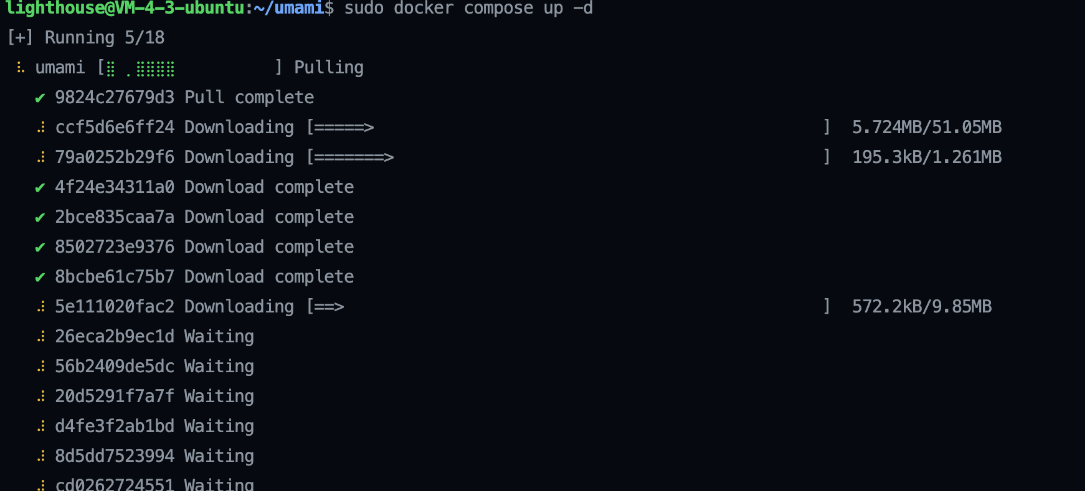 我选择用Docker Compose来安装Umami,因为这种方式简直是懒人福音,简单又快捷。不过,官方文档里没有提供Docker Compose的配置文件(docker-compose.yml),幸好,我在GitHub上的代码库中找到了。这里分享一下链接,大家可以直接参考: